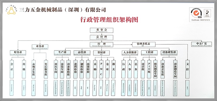 三力五金機械制品(深圳)有限公司共有員工約230人,其中技術(shù)人員約30人,研發(fā)人員約10人,品質(zhì)人員約15人,管理人員約30人。主要業(yè)務有五金沖壓和加工,服務包括: 模具設計及制造;五金沖壓;鈑金加工;噴涂、燒焊、碰焊、拋光、拉絲;絲印、移印‘’OEM 組裝制造;自動化/半自動化設備研發(fā)制造。